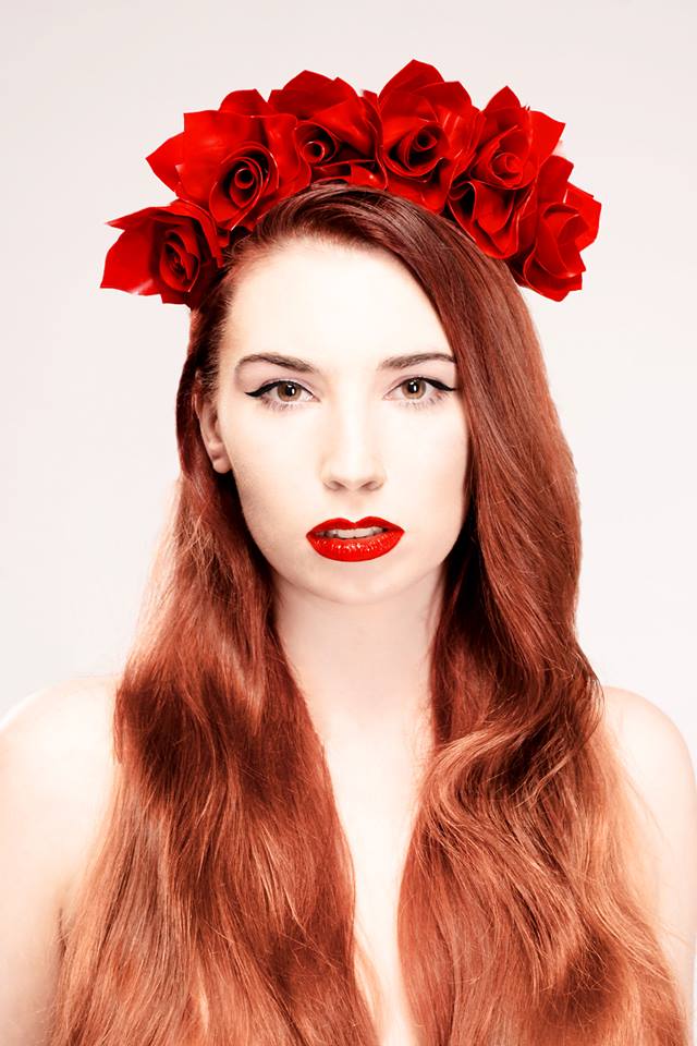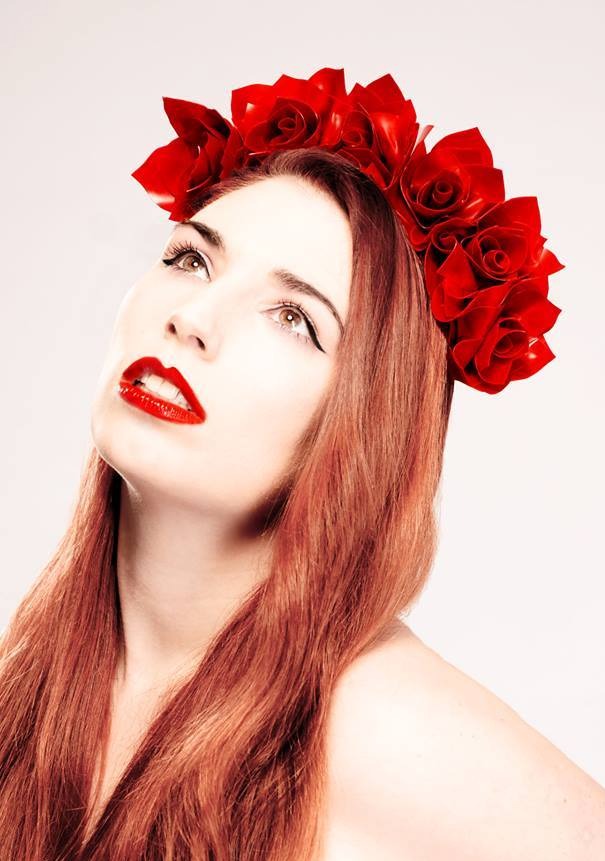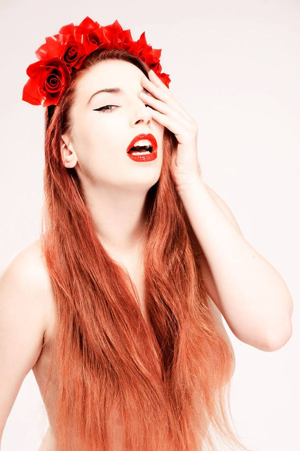 Latex Rose headdress set on a black velvet headband.