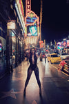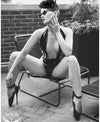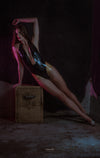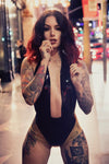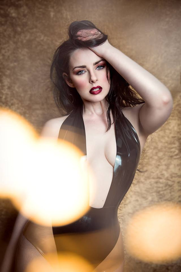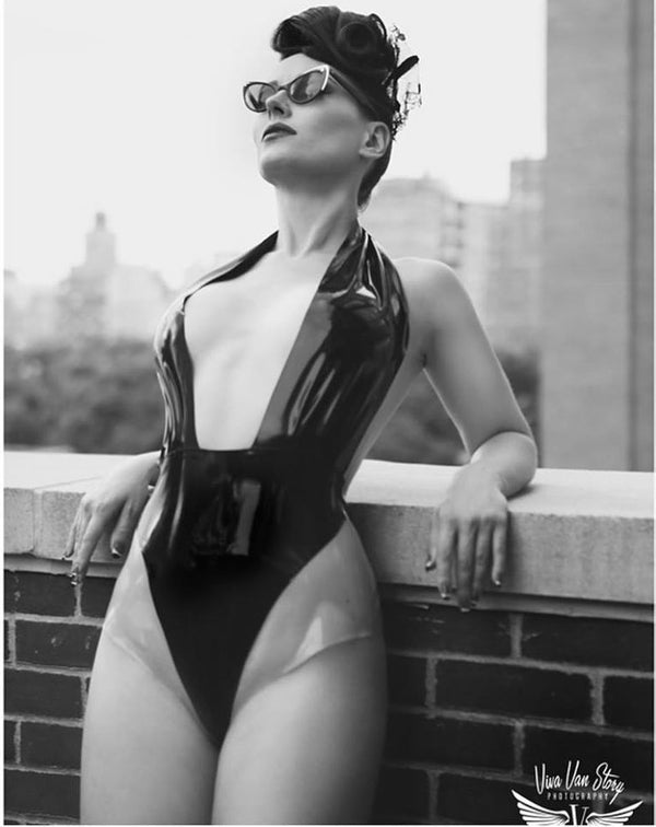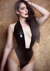 Deep neck line halter neck bodysuit in Black.