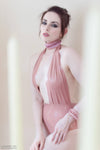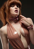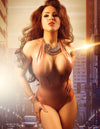 Deep neck line halter neck bodysuit in Nude.