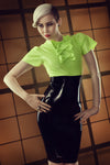Black latex high waist pencil skirt, made with 4 panels.