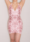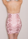 Latex 'Damask' dress in Baby pink base and Dusty pink glitter latex appliques.
