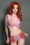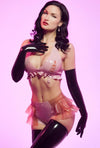 Lilac latex knickers with translucent Pink ruffles on each side.
