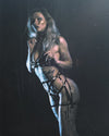 Black latex with silver colour metal o-rings, buckles and eyelets.