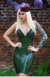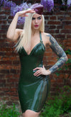 Olive colour 'Olena' dress, in Olive Green and Translucent Olive side panels.