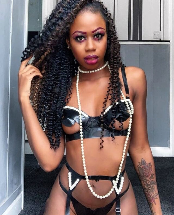 Latex 'Perle' open cup underwired bra with white latex 3D pearl trim.