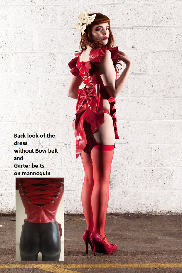 The model is wearing Big Red Bow belt over the waist, Red suspender belts under the dress & hat which are available in our shop separately (links below).