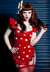 The dress & bow belt worn over the garter belt are not included but available in our shop separately here (dress) and here (belt)