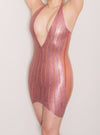 'Rosaline' dress with Translucent Pink base and Dusty Rose glitter latex stripes.