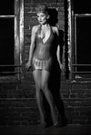 Halter neck straps are length adjustable with buckle and eyelets at the back of the neck.